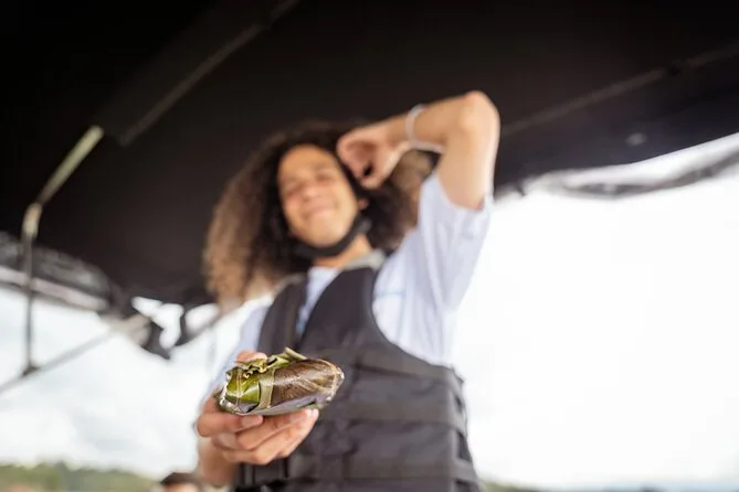 La subida a la Piedra del Peñol no es cualquier cosa—casi 750 escalones. Dejé de contar alrededor de los 200 porque un niño a mi lado me estaba ganando y fingí no importarme (pero sí). La vista desde arriba no es solo agua e islas, es un mosaico de verdes y azules que te invita a quedarte en silencio un rato. Una brisa fresca hacía que todo se sintiera renovado. La bajada fue más fácil (la gravedad ayuda), y luego nos subimos a un bote para un paseo tranquilo por el embalse. El almuerzo llegó envuelto en hoja de plátano—una especie de carne fría que sabía mucho mejor de lo que parecía. Alguien puso música suave desde su celular; encajaba perfecto.