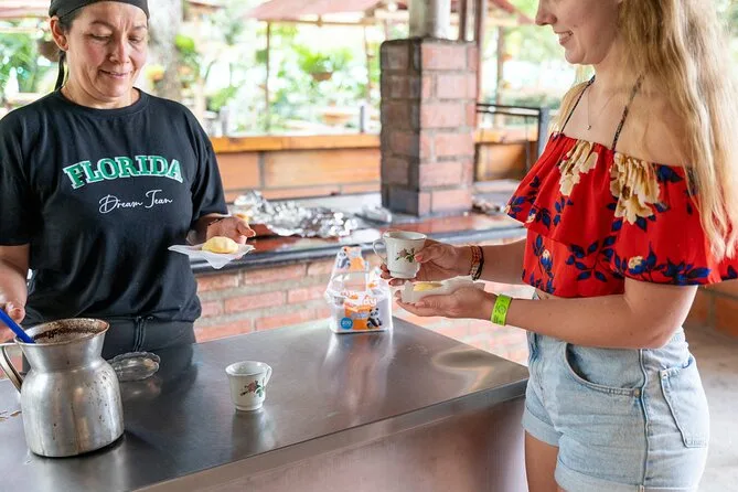 No esperaba que mi primer recuerdo real de Guatapé fueran fresas con crema, pero ahí estábamos—en el parque del pueblo justo después del amanecer, disfrutándolas mientras observábamos a la gente. Nuestro guía, Andrés, tenía esa habilidad para relajar a todos (bromeaba diciendo que su “cara de desayuno” era mejor que su “cara de escalada”). Mojamos pan extra en chocolate caliente en un lugarcito llamado Casa Colombia—una experiencia que parecía sacada de la rutina local. El aire olía dulce pero también a tierra mojada por la lluvia de la noche anterior. Probé por primera vez el tomate de árbol—ácido y sorprendentemente rico.