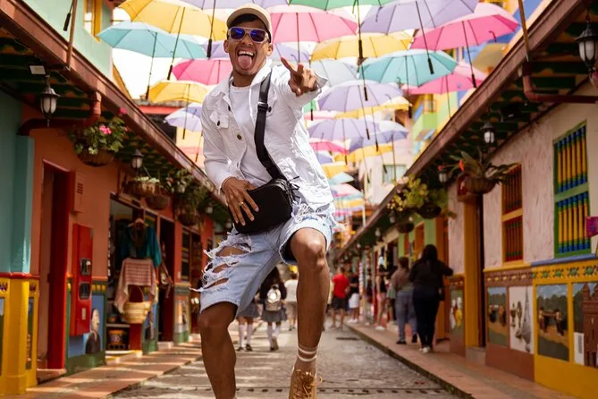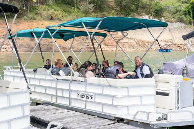 Tu día incluye transporte ida y vuelta desde Medellín, todas las degustaciones como fresas con crema y tomate de árbol por la mañana, entrada para subir la Piedra del Peñol, un relajante paseo en barco por el embalse con almuerzo a bordo, paradas en las coloridas calles de Guatapé incluyendo la Calle de las Sombrillas, tiempo para explorar tiendas o tomar fotos, y termina con pasteles y queso local antes de regresar.