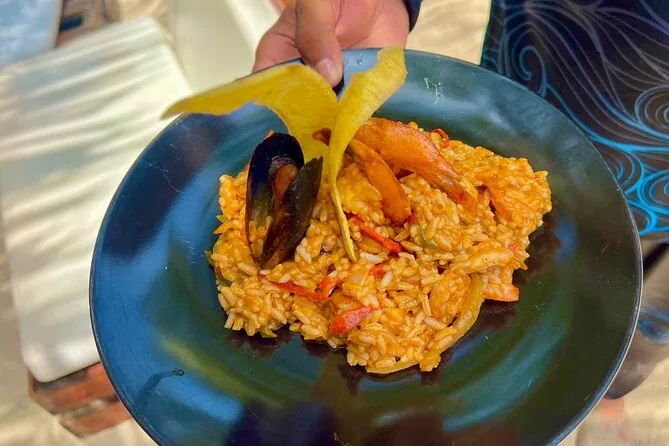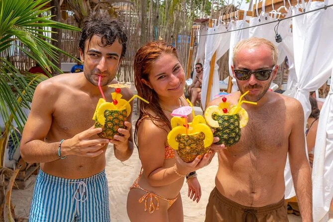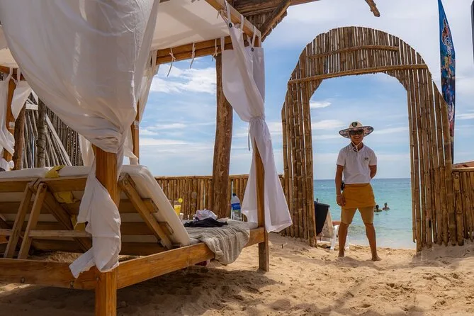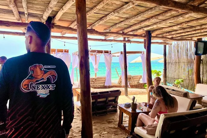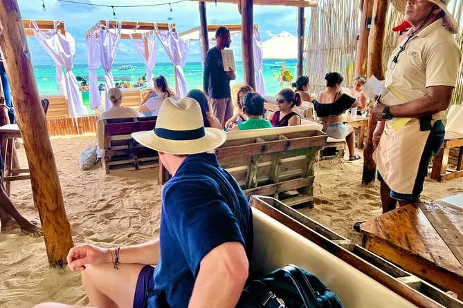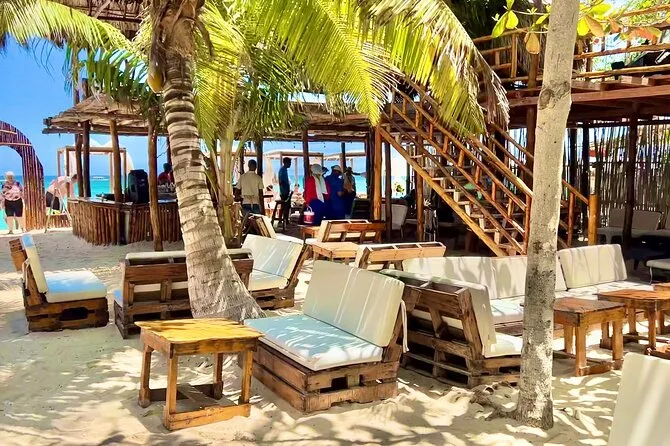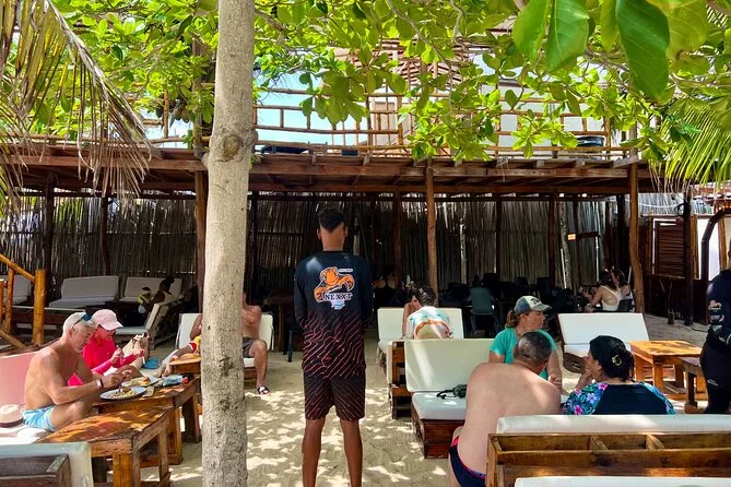 Después, Playa Blanca fue justo lo que necesitaba — agua cristalina y arena suave entre los dedos. Caminamos cinco minutos hasta un club de playa donde alguien me ofreció una bebida fría antes de que pudiera sentarme (me podría acostumbrar rápido). El almuerzo era libre con un cupón — elegí pescado frito y lo disfruté viendo pelícanos zambullirse a lo lejos. Siempre hay música cerca, pero también rincones tranquilos para escuchar solo las olas y desconectar un rato.