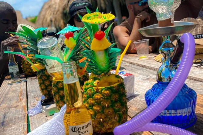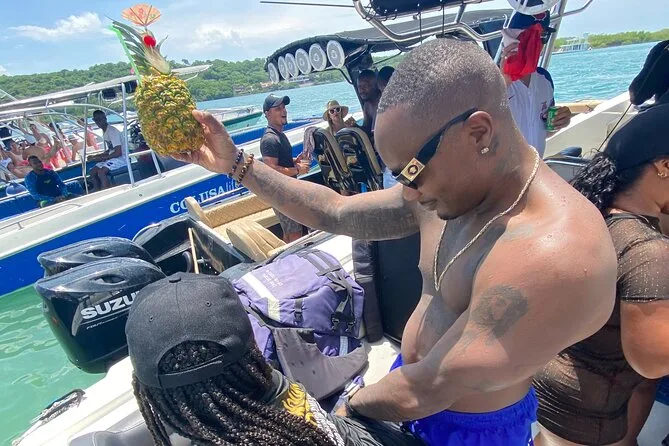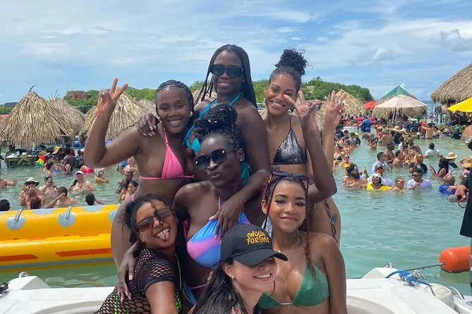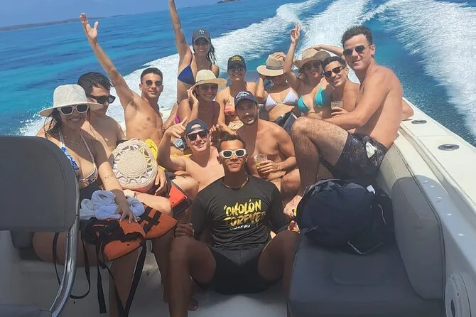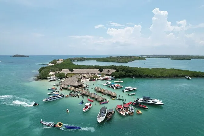 Tu día incluye encuentro en el muelle Pegasus en Cartagena con traslado a la marina, paseo en barco compartido por las Islas Rosario con sonido estéreo y hielera con hielo, tiempo para nadar en “La Poolita,” dos cervezas nacionales por persona, almuerzo caribeño típico en la playa de Isla Cholón y transporte de regreso al muelle Pegasus a media tarde.