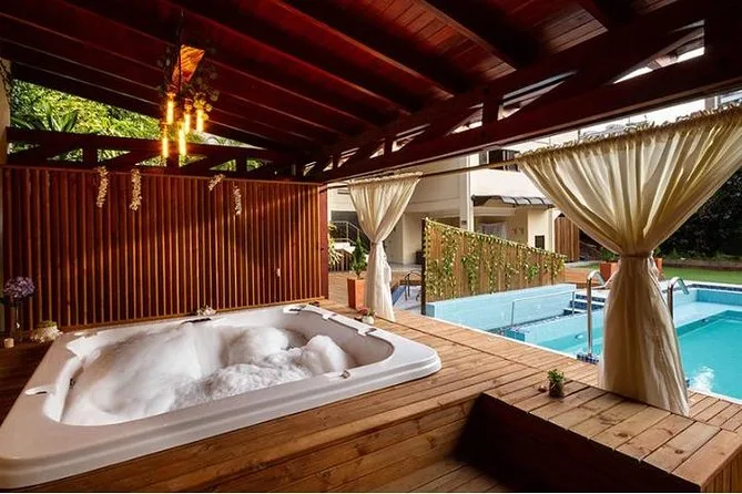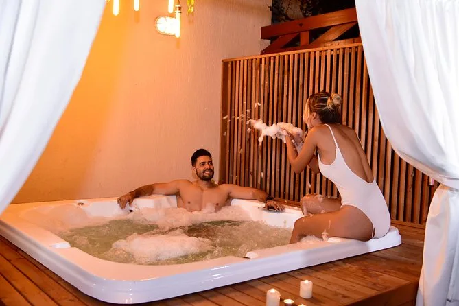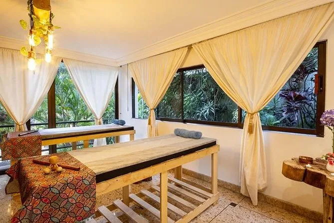 Sumérgete en la tranquilidad de un spa privado en Medellín con bebida de bienvenida, masaje corporal con piedras volcánicas, limpieza facial, exfoliación de café o terapia de frutas, y tiempo en baño de burbujas con música y aromas. Con snacks y vino servidos a tu lado y todo incluido — hasta el transporte — será una experiencia inolvidable.