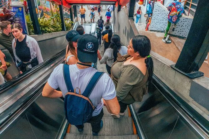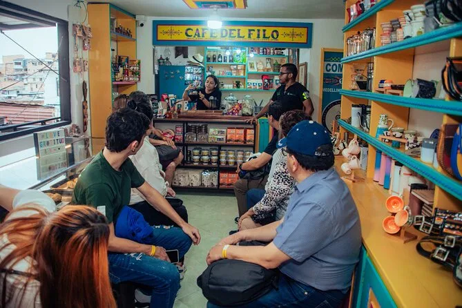 El paseo en Metrocable — impresionante. Deslizándote sobre techos rojos y colinas verdes, viendo cómo Medellín se extiende abajo como un mosaico vivo. Jhon señalaba barrios y contaba historias de cómo el cable cambió la vida aquí (su tío solía caminar una hora cuesta arriba antes de que lo inauguraran). Arriba, se siente un silencio por un momento — solo el viento y perros ladrando a lo lejos. Después bajamos de nuevo a Comuna 13 para seguir con más murales y risas. Pasamos por un pequeño museo del café (el aroma era increíble…) y probamos un helado local que se derretía rápido en mi mano. Hubo un instante en que todos nos quedamos callados frente a un mural de dos niños tomados de la mano — no sé por qué nos llegó tan profundo.