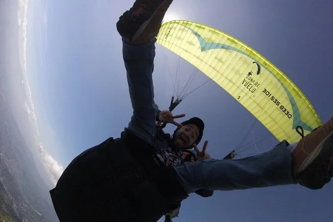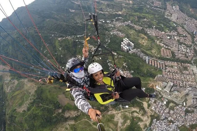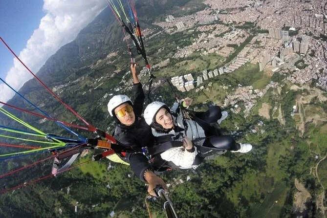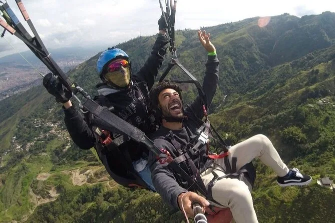 Sentirás el corazón acelerarse mientras corres por una ladera cerca de Medellín para despegar en parapente sobre tejados y montañas verdes. Un piloto local te guía en planeos suaves y giros emocionantes mientras grabas todo en GoPro HD. Transporte privado para que solo te preocupes por disfrutar las vistas desde el cielo.