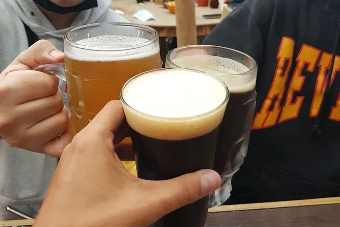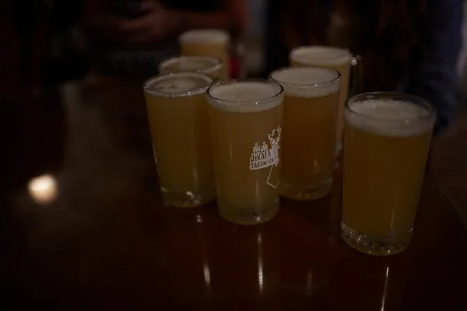 Degustarás diferentes cervezas artesanales en cada parada—usualmente cinco o seis variedades en total.