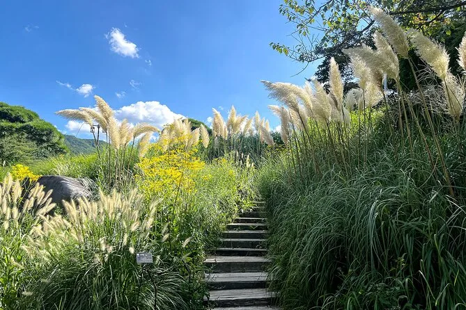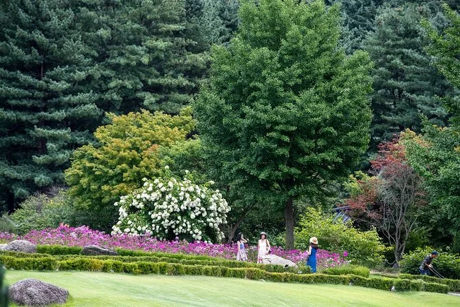 El tour dura todo el día e incluye paradas en el Jardín de la Calma, Isla Nami y Gangchon Rail Park, con transporte ida y vuelta.