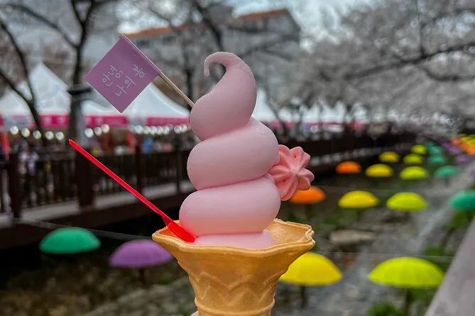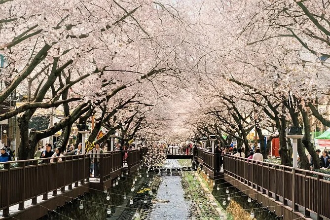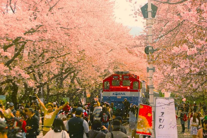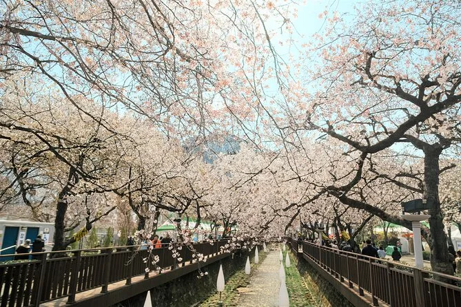 Pasea bajo nubes de cerezos en flor a lo largo del famoso arroyo Yeojwacheon en Jinhae, disfruta del almuerzo donde prefieras y recorre las viejas vías cubiertas de pétalos, todo acompañado por un guía local amable y con recogida fácil desde Busan. Prepárate para risas, momentos de calma bajo los árboles en flor y escenas de la vida local que recordarás mucho tiempo.