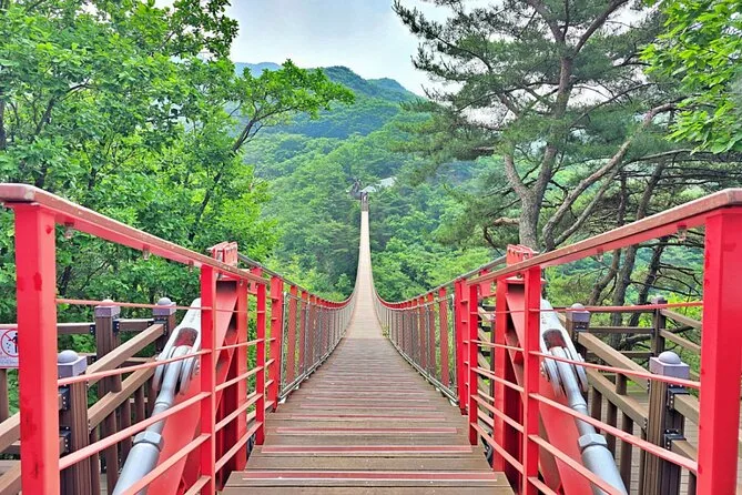Visitas el Parque Imjingak, el Tercer Túnel de la Agresión, el Salón de Exhibiciones de la DMZ, el Observatorio Dora para ver Corea del Norte, el Salón de la Experiencia de Corea del Norte y el Puente Colgante Gamaksan.