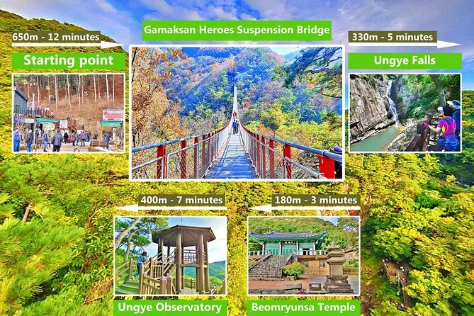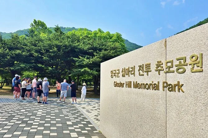 Terminamos en el Puente Colgante Gamaksan — la verdad, las piernas me dolían, pero cruzarlo fue como una recompensa después de tantas lecciones de historia. Se movía más de lo que imaginaba (alguien detrás gritó), y abajo había un valle verde salvaje donde alguna vez se libraron batallas. Minji señaló el Memorial Gloucester Hill y nos contó sobre los soldados británicos que lucharon allí — su inglés se aceleraba cuando se emocionaba, así que me perdí algunos detalles, pero capté la esencia.