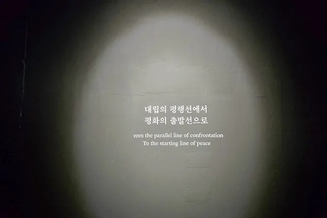 El siguiente fue el Tercer Túnel — te ponen casco y bajas por una pendiente húmeda y estrecha bajo tierra. Da un poco de claustrofobia, pero también emoción. Las paredes estaban frías y mojadas; me di un golpe en la cabeza (menos mal que llevaba casco). Minji explicó lo cerca que está ese túnel de Seúl — a poco más de 50 kilómetros — algo increíble cuando estás ahí abajo. Ya en la superficie, vimos un corto en el Salón de Exhibiciones de la DMZ con imágenes y entrevistas antiguas. Lo que más me impactó fue el Salón de la Experiencia de Corea del Norte; escuchar las voces de desertores resonando allí hacía que todo se sintiera más intenso de lo que esperaba. No pude dejar de pensar en la historia de una mujer mucho tiempo después de irnos.