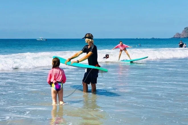 Vas a aprender a surfear con gente que creció en estas olas—sin presión, solo consejos reales y muchas risas. Si buscas una introducción segura al surf en Costa Rica, esta es la indicada.