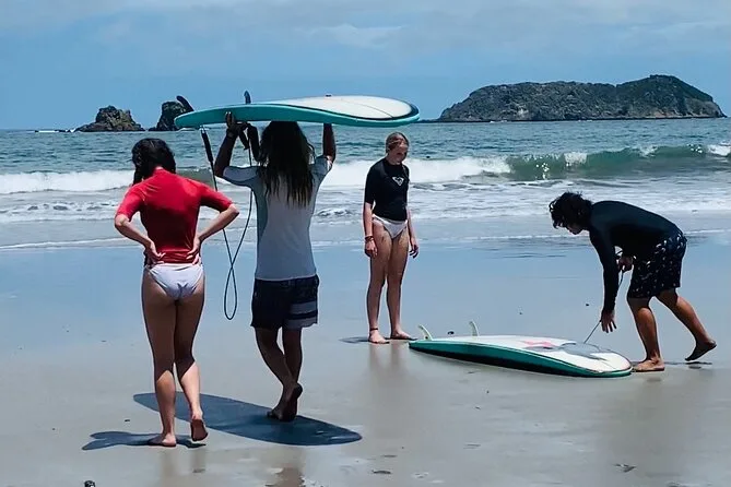 Tu tabla, lycra y todo el equipo estarán listos al llegar. También incluyen agua para beber—solo trae ganas y bloqueador solar.