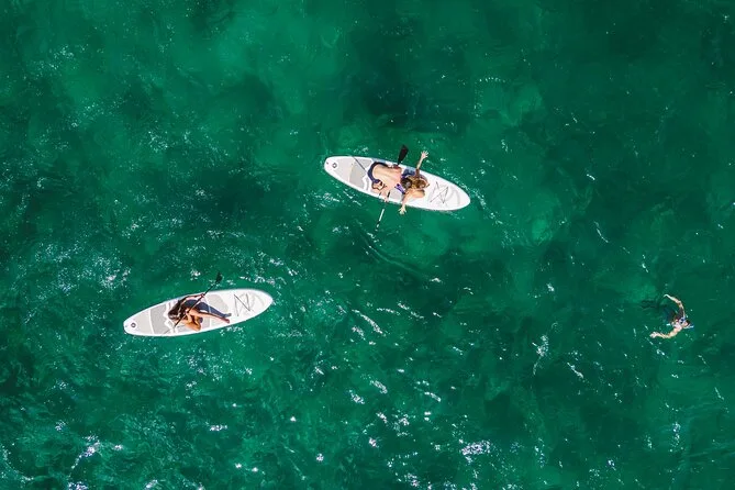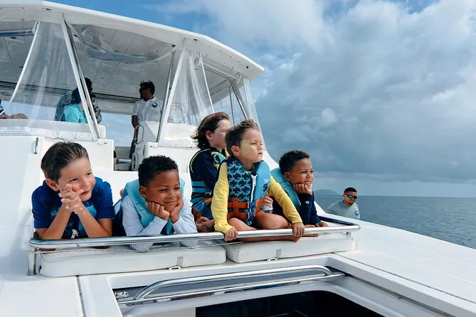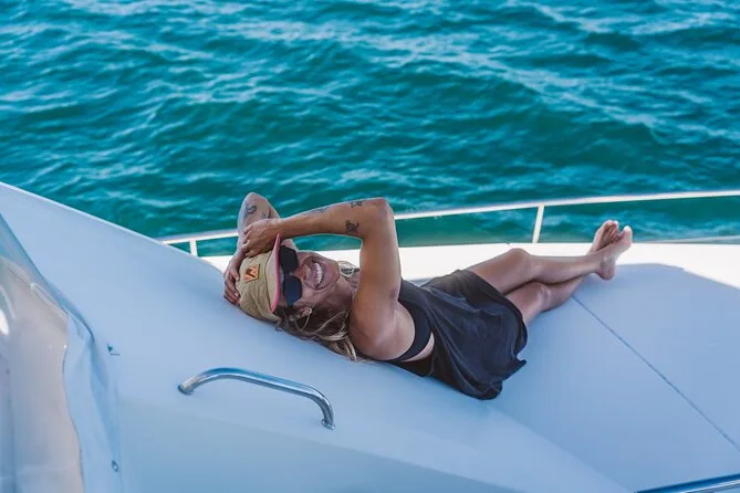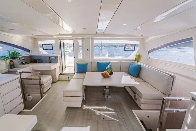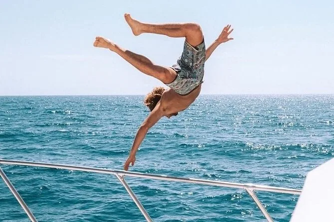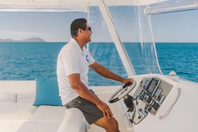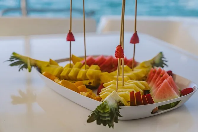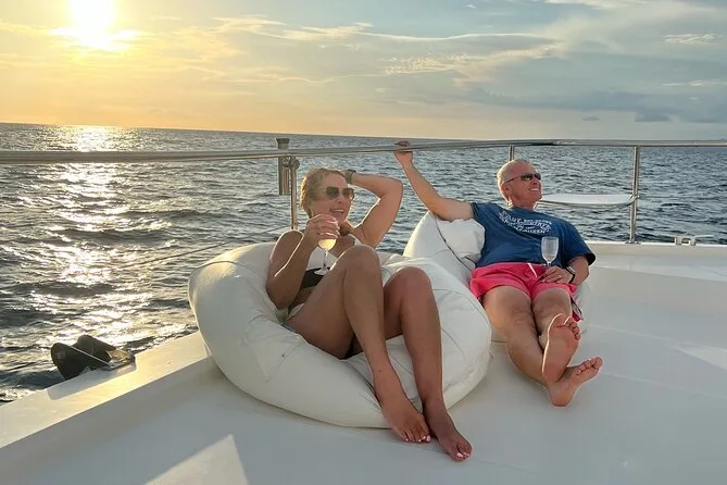 Tu día incluye cócteles de bienvenida al abordar en Flamingo, todos los aperitivos y bebidas durante el paseo preparados por un chef a bordo, acceso completo a equipo para deportes acuáticos como snorkel y paddle boards, además de equipo de pesca si quieres probar suerte; salones con sombra dentro y fuera; WiFi gratis; baños; y una tripulación local amable que te acompaña en cada paso antes de regresar a tierra tras el atardecer.