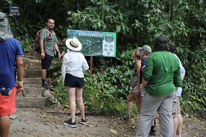 Camina por senderos en la selva alrededor del Volcán Arenal con un guía local que comparte historias, para para fotos junto a una laguna verde jade, disfruta un almuerzo casero costarricense en buena compañía y relájate en las aguas termales naturales del río Choyin antes de regresar al pueblo — un día lleno de color, risas y momentos de calma inesperados.