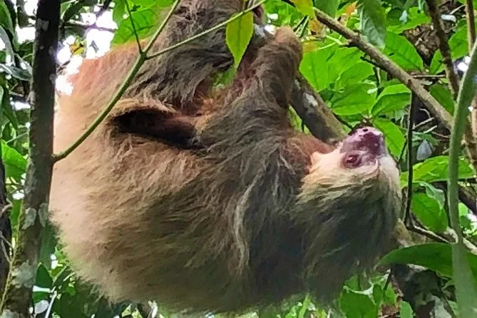 Camina con guías locales por Sloth’s Territory cerca de La Fortuna, observa perezosos salvajes con telescopios mientras las aves cantan arriba. Recorre senderos embarrados junto al río La Havana, escucha historias familiares y termina con fruta orgánica fresca de la finca. Es un plan tranquilo, divertido a ratos, que te deja con la sensación de haber descubierto algo especial.