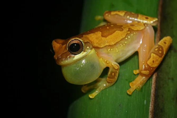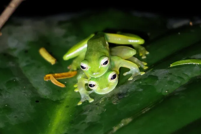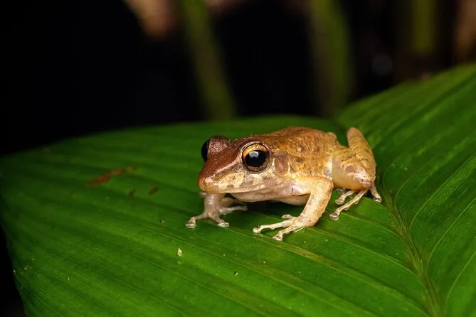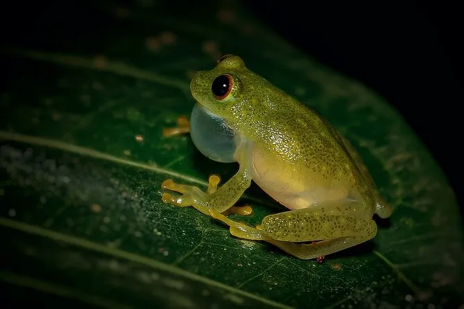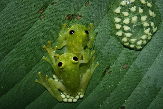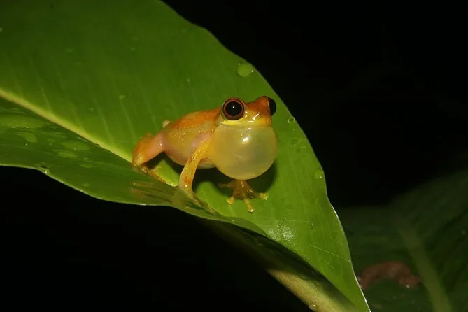 Podrás ver ranas de ojos rojos, ranas de cristal, zarigüeyas, perezosos, gusanos terciopelo, armadillos, ranas dardo y algunas aves.