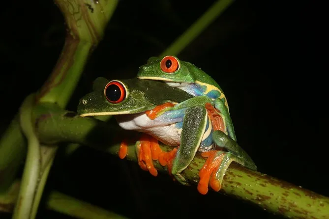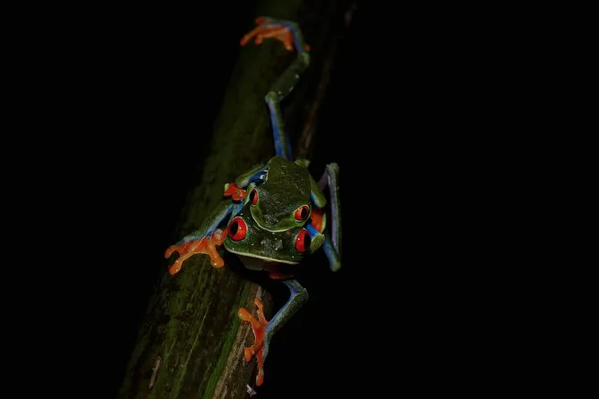 Adéntrate en la selva de La Fortuna de noche con un grupo pequeño y guía local, buscando ranas, perezosos y otros animales nocturnos con linterna. Prepárate para senderos embarrados, encuentros cercanos con fauna (si tienes suerte) y momentos de silencio bajo los árboles. Incluye guía, entradas, linternas, agua y seguro alguna historia para contar.