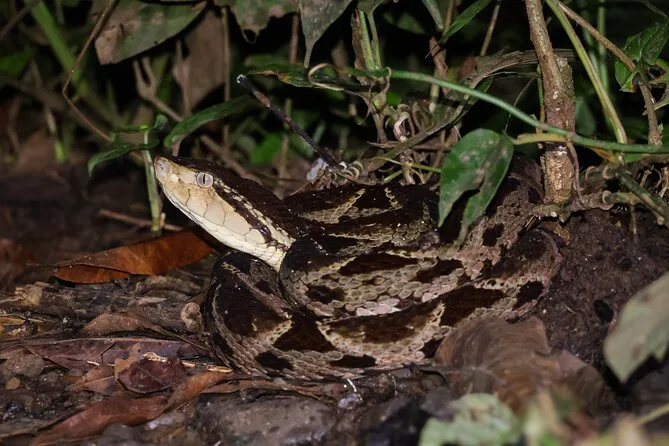 Tu noche incluye entrada guiada a la selva cerca de La Fortuna con un experto local que lidera un grupo pequeño; se entregan linternas para que no necesites llevar la tuya; la entrada al parque está cubierta; se ofrece agua embotellada; y hay estacionamiento seguro si llegas en tu propio vehículo.