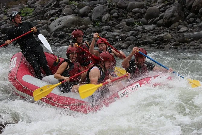 Tu día incluye recogida y regreso al hotel en La Fortuna, todo el equipo de seguridad para rafting en el Río Balsa con guía local, acceso a baños privados y vestuarios en entradas y salidas exclusivas del río, además de un almuerzo contundente en el restaurante Hunters and Gatherers junto a la cascada El Salto. También va un fotógrafo que toma fotos que puedes comprar para tener prueba de tu cara de remo antes de regresar.
