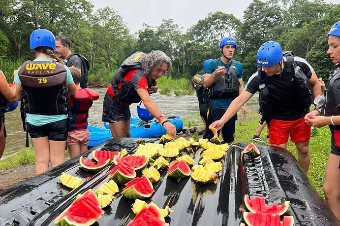 Tu día incluye transporte ida y vuelta desde hoteles seleccionados en La Fortuna, todo el equipo necesario para el rafting como chalecos y cascos, agua embotellada durante todo el recorrido, frutas tropicales frescas en la pausa junto al Río Sarapiquí, guías profesionales bilingües que conocen cada curva de estos rápidos, y un almuerzo tradicional costarricense para cuando te hayas secado y estés listo para regresar.