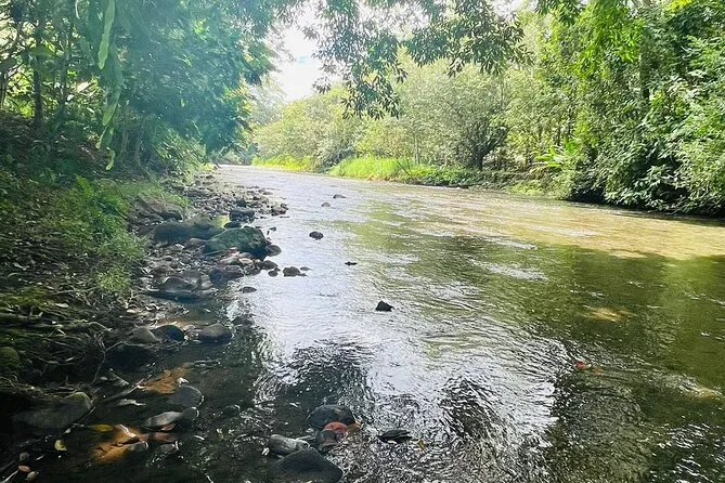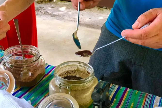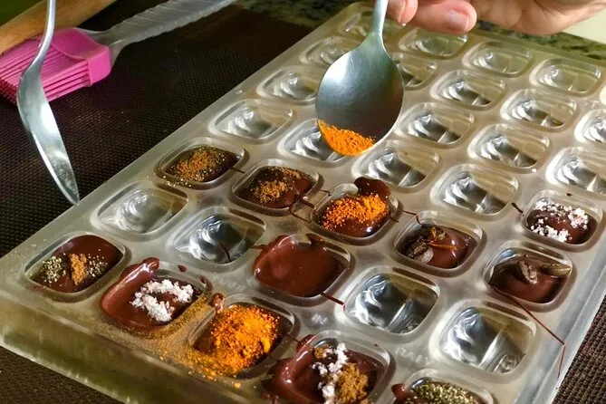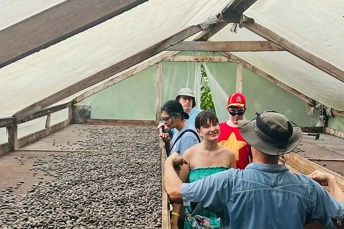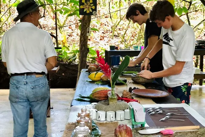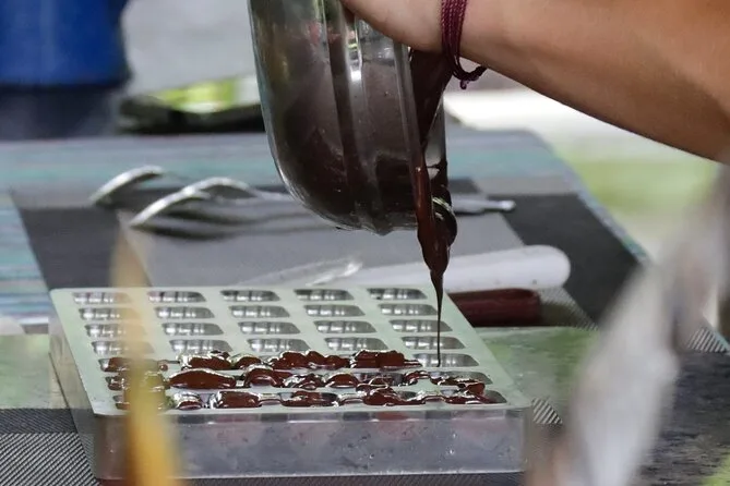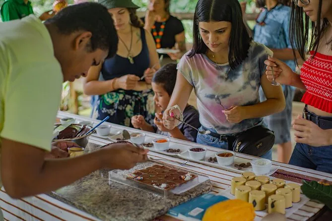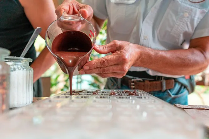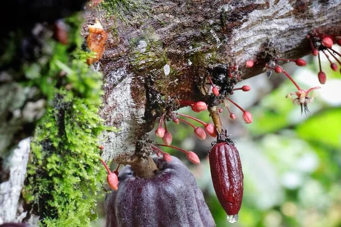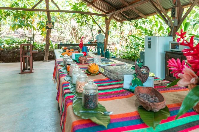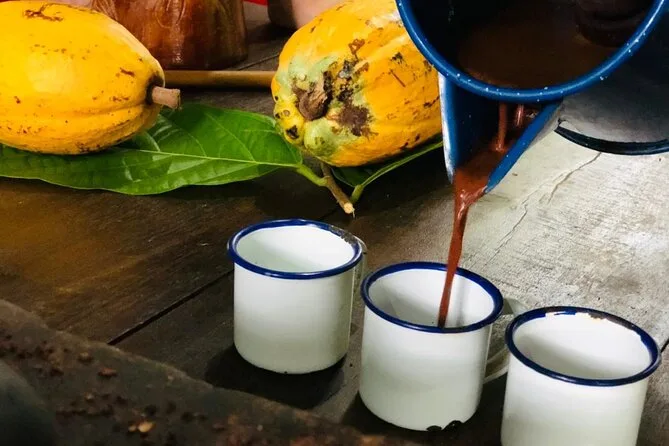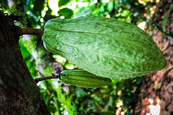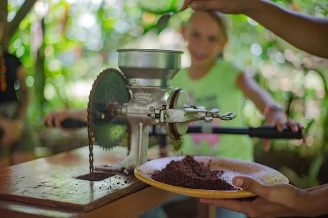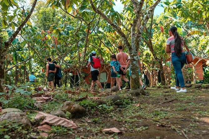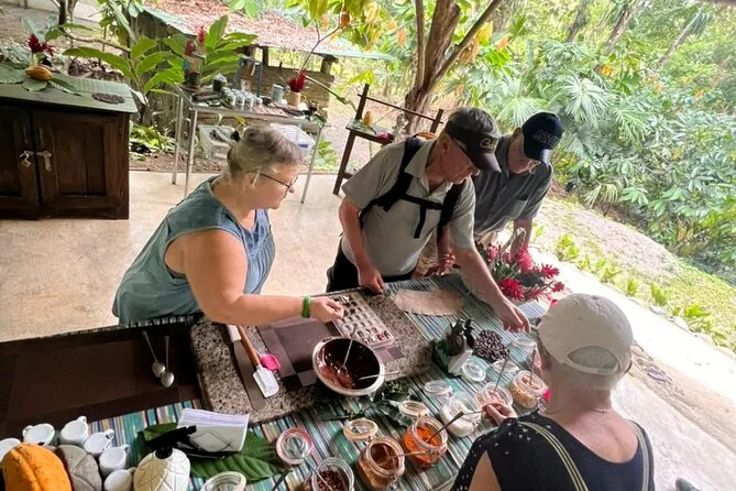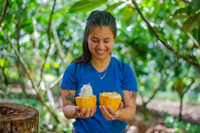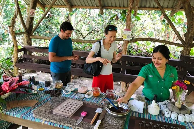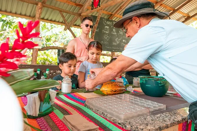 Tu día incluye acceso guiado a una plantación orgánica de cacao en La Fortuna con un experto local que te acompaña en cada paso; todas las degustaciones de alimentos; además de tiempo práctico para tostar granos y hacer tus propios bombones antes de regresar a casa pegajoso pero feliz.