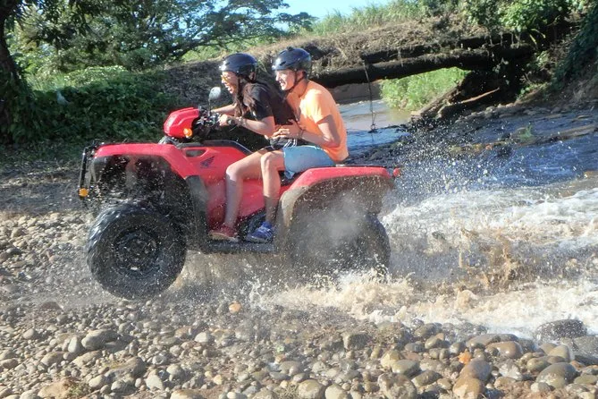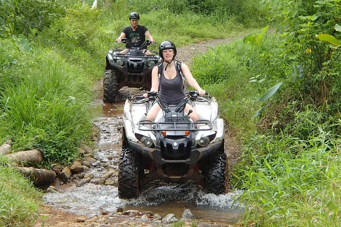 Tu día incluye el uso privado de potentes ATVs guiados por un experto local bilingüe por los caminos y senderos de La Fortuna. Las entradas a las aguas termales naturales y apartadas están incluidas para que puedas relajarte a mitad del recorrido sin preocuparte por tickets o multitudes.