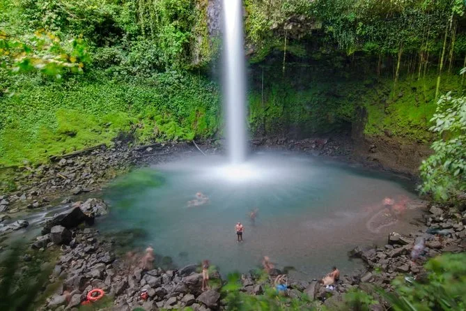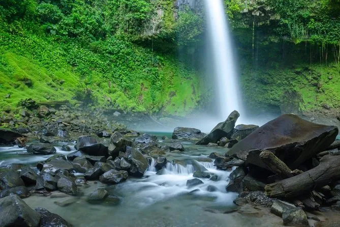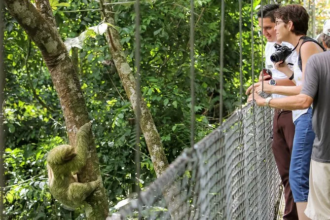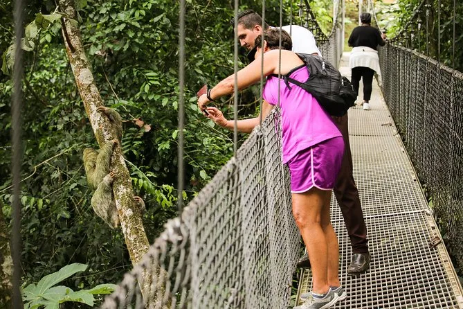 Te levantarás temprano en La Fortuna para un día completo: caminata por los campos de lava del Volcán Arenal con guía local, baño bajo la Catarata La Fortuna tras bajar cientos de escalones y paseo por los Puentes Colgantes Místico sobre la selva. Prepárate para risas, piernas cansadas, buena comida y quizá un encuentro con un perezoso que recordarás por mucho tiempo.