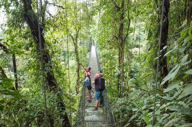 Tu día incluye recogida y regreso al hotel en La Fortuna, agua embotellada para mantenerte hidratado entre paradas, entradas a todos los parques del tour combinado, un almuerzo típico costarricense (con opciones vegetarianas si las necesitas), vehículo con aire acondicionado para los traslados y un guía local que compartirá historias en cada paso.
