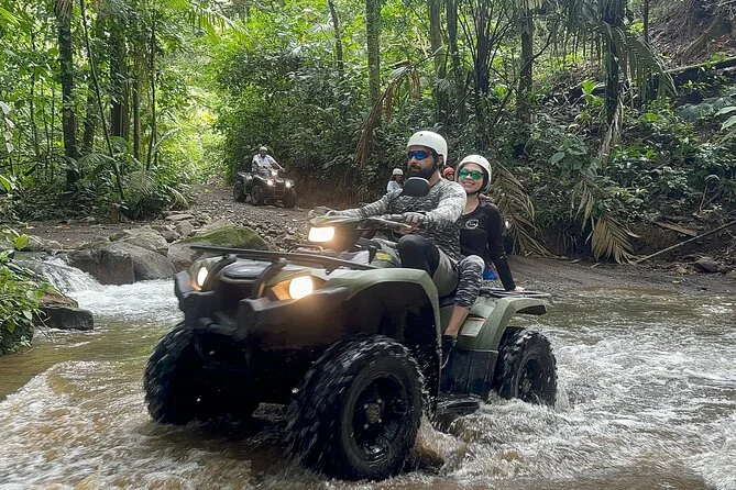 Tu día incluye uso de ATV con casco, agua para los tramos más intensos y la guía de locales que conocen cada curva de estos senderos privados en la selva — solo no olvides tu licencia antes de salir.
