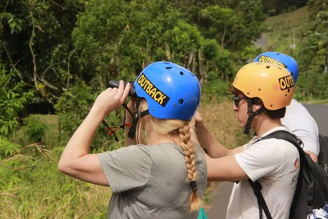 Salimos del camino principal casi de inmediato — nada de vueltas aburridas, sino senderos reales por fincas privadas. Sentías que te metías en rincones secretos de la selva (y en parte, sí). Hubo un cruce de río donde todos dudamos un segundo — si lo hacías mal, el agua te llegaba hasta los tobillos. El guía solo se rió y nos hizo señas para seguir. Te juro que el corazón me latía más fuerte que el motor en ese momento.