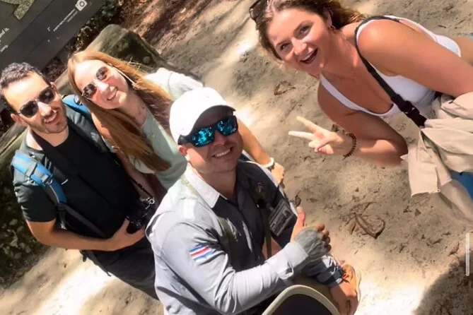 Camina con un guía local experto por los senderos de Manuel Antonio con equipo óptico para ver perezosos, monos, ranas y más — además recibirás fotos HD de recuerdo. Luego relájate en playas de arena blanca y negra o explora a tu ritmo. Esto es Costa Rica auténtico: sonidos de la naturaleza, risas del grupo y tal vez nuevos amigos.