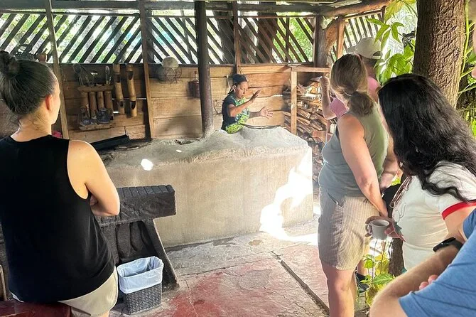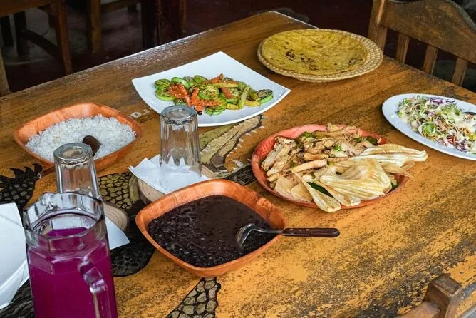 Después de hora y media navegando, regresamos para saborear la cultura guanacasteca. En una cocina al aire libre, Doña Rosa nos enseñó a hacer tortillas a mano—se rió cuando la mía quedó un poco torcida. El maíz había sido molido esa misma mañana; se podía oler desde que llegamos. También probamos la cerámica Chorotega. La arcilla era fresca y arenosa, nada que ver con lo que esperaba. Los locales compartían historias de sus tradiciones familiares mientras moldeábamos pequeños cuencos. El almuerzo fue sencillo pero reconfortante—arroz, frijoles, plátanos—y después de tanto aire puro, fue justo lo que necesitaba.
