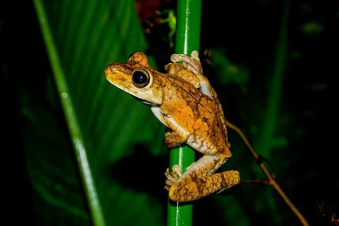 Únete a un grupo pequeño para una caminata guiada de noche por los senderos del Parque Rainmaker cerca de Quepos, buscando ranas raras, murciélagos, lagartos y más con linterna. Prepárate para zapatos embarrados, risas en la cena del rancho y momentos que querrás guardar para siempre después de tu viaje a Costa Rica.