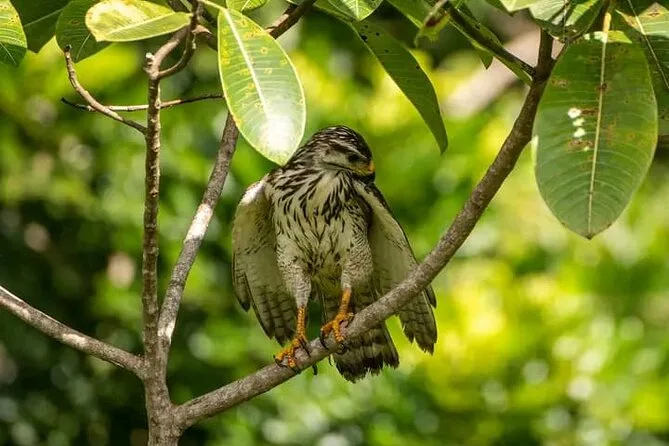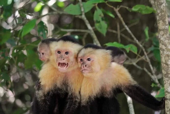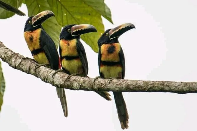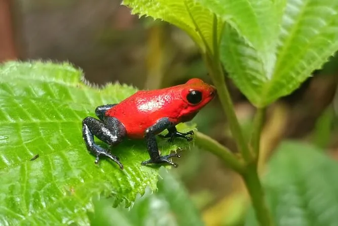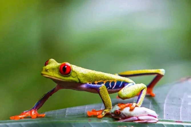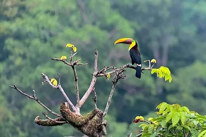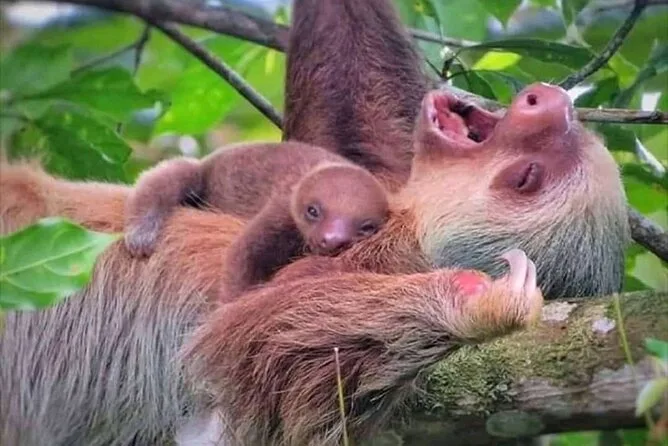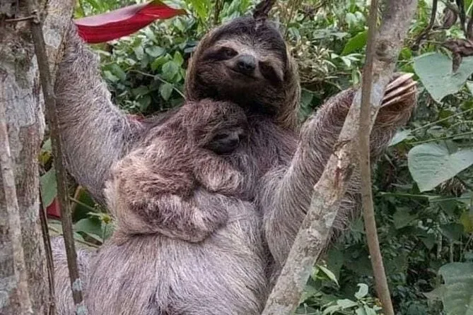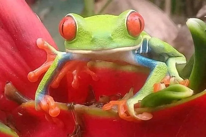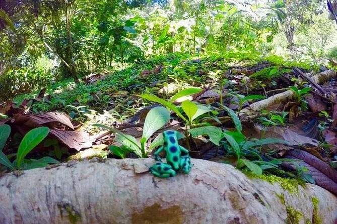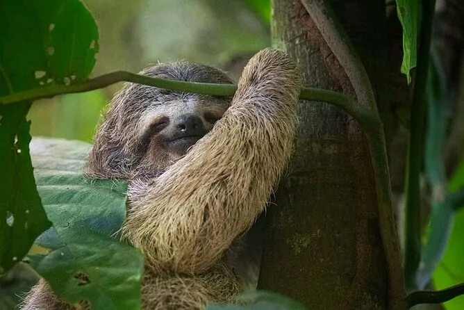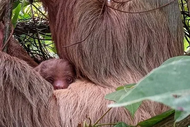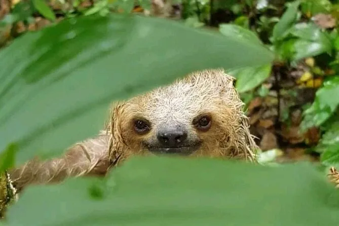 Podrás ver dos tipos de perezosos, ranas de colores, aves exóticas y monos durante el recorrido.