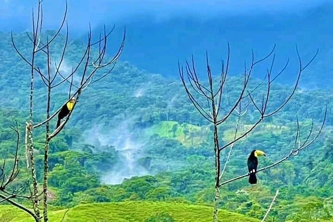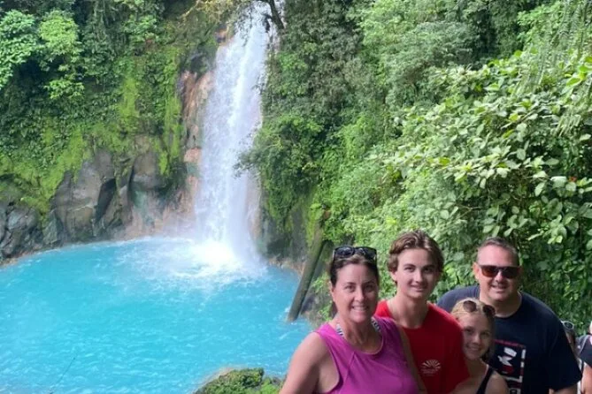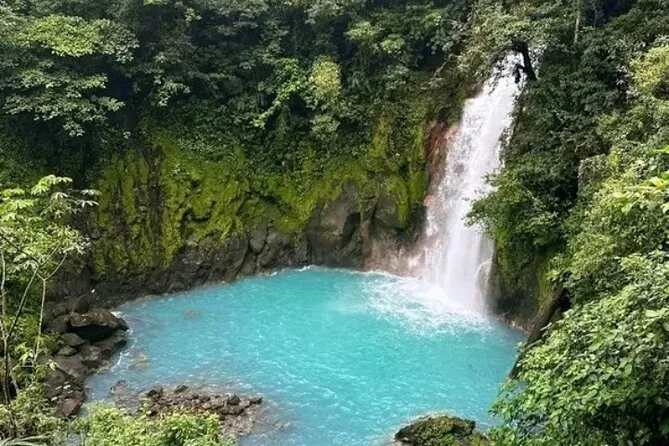 Camina por senderos en la selva hasta la cascada del Río Celeste, haz tubing en su río azul con pausas para fruta fresca, avista fauna como perezosos y monos con tu guía local, y disfruta un almuerzo típico costarricense antes de regresar cansado pero feliz.