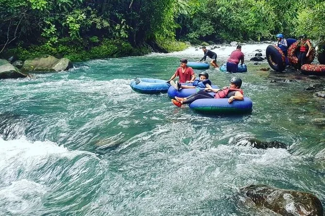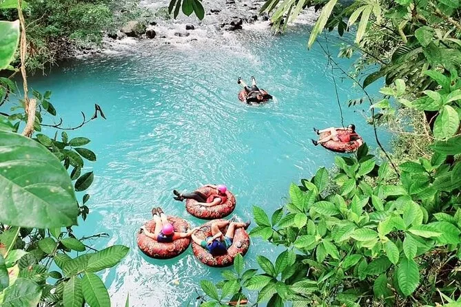 Tu día incluye recogida en hotel desde La Fortuna o playas seleccionadas (a menos que conduzcas por tu cuenta), todas las entradas para senderos y tubing en las aguas azules del Río Celeste, frutas tropicales frescas durante la pausa en el río, un guía bilingüe experto durante todo el recorrido, y un almuerzo local típico antes de regresar en comodidad con aire acondicionado.
