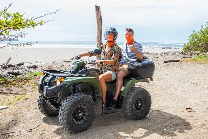 Tu día incluye equipo de seguridad, agua embotellada, snacks de fruta fresca de temporada que prepara tu guía en las paradas en la playa, gasolina para el quad, y acompañamiento completo durante toda la ruta—con dos personas por ATV y apoyo amable desde el inicio hasta el regreso a Samara.