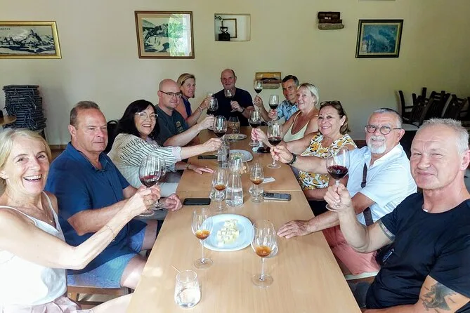 La excursión incluye cata de vinos en una konoba local; el almuerzo está disponible en Skradin pero no siempre está incluido en el precio.
