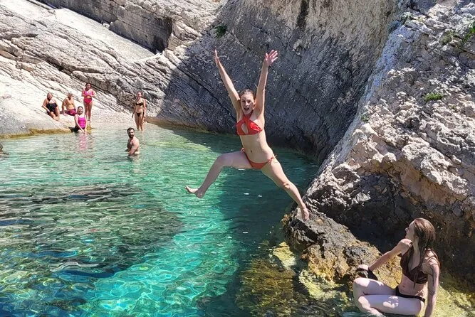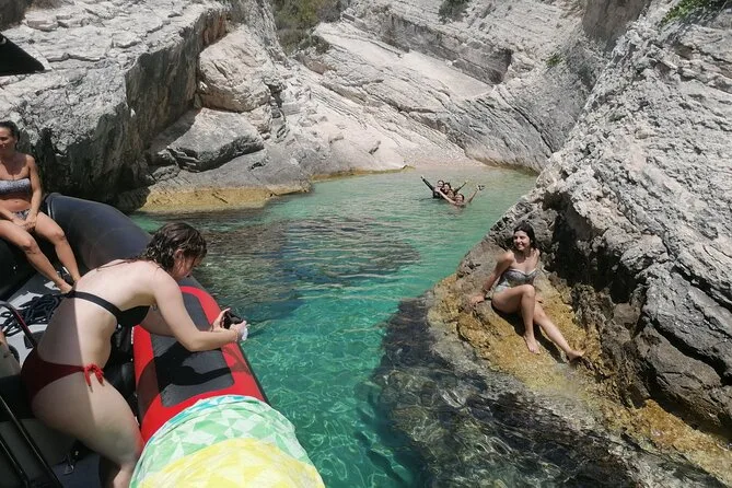 Tu día incluye equipo de seguridad para todos, asientos de lujo con sombra durante todo el recorrido (nada de asientos duros), uso de equipo de snorkel en lugares como la Laguna de Budikovac, música por Bluetooth si quieres, seguro durante las actividades y la guía de tu patrón en cada isla antes de regresar a Split al atardecer.