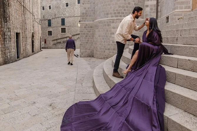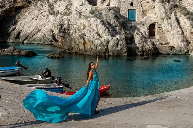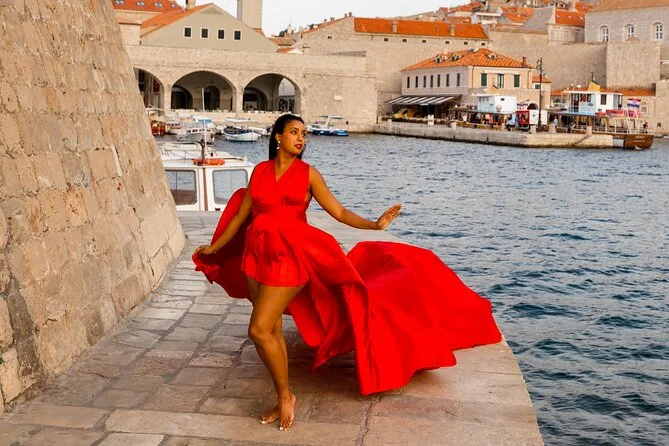 Te pondrás un vestido volante hecho a mano y recorrerás el casco antiguo de Dubrovnik con un guía local, deteniéndote para fotos en lugares famosos y rincones secretos. Prepárate para reír, escuchar historias reales y vivir momentos en los que olvidarás que te están fotografiando, simplemente disfrutando la energía de la ciudad de una forma que recordarás mucho después de tu viaje.