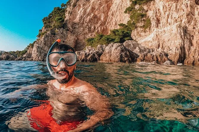 Tu día incluye recogida y regreso al hotel en Dubrovnik, todos los gastos de combustible cubiertos por Marko, tu patrón privado (o alguien igual de amable), equipo de snorkel y toallas listas a bordo, bebidas ilimitadas como cerveza local o vino blanco con frutas frescas entre baños, y tiempo para pasear por pueblos o probar aceite de oliva casero antes de volver a casa con sal en el pelo y una sonrisa.