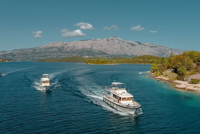 El tercer día dejamos la tierra atrás—embarcar en nuestro yate privado fue surrealista. La tripulación nos ofreció bebidas de bienvenida mientras poníamos rumbo a la isla de Korcula pasando por Hvar. Hvar está llena de vida incluso a media mañana; paseamos por calles empedradas cubiertas de buganvillas y nos dimos un chapuzón en las islas Pakleni—el agua tan clara que ves mover los dedos de los pies. El almuerzo fue en la cubierta, en una cala tranquila, antes de seguir hacia el pueblo de Lumbarda en Korcula. Nuestra villa tenía vistas a viñedos que bajaban hasta el mar; el atardecer aquí es otro nivel.