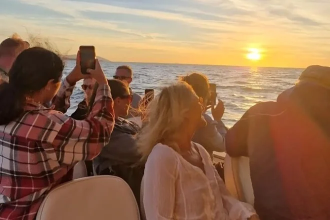 La Cueva Azul en Biševo fue nuestra primera parada tras más o menos una hora; Luka calculó el momento perfecto para que viéramos esa luz azul tan alucinante dentro. Es difícil de explicar si no estás ahí... todo brilla como si alguien hubiera encendido un neón bajo el agua. Se crea un silencio especial cuando flotas; hasta los niños se quedaron callados por un momento. Más tarde, en la cala Stiniva en la isla de Vis, me quedé flotando de espaldas mirando esos acantilados —no esperaba sentirme tan pequeño, pero de la mejor manera. El agua estaba fría pero tan clara que podías ver cómo se movían tus dedos de los pies.