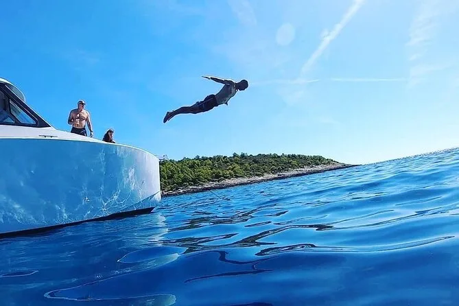 Comienza tu día en Split con un grupo pequeño y tripulación local, navegando en lancha rápida para ver el brillo surrealista de la famosa Cueva Azul. Disfruta un almuerzo a la parrilla en una cala privada en la isla de Vis (con opciones vegetarianas), nada cerca de la isla de Šolta, saborea vino o cerveza local y relájate con café o helado antes de regresar—con la piel calentada por el sol y la sal del mar.