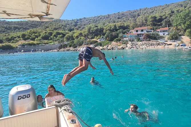 Perdí la noción del tiempo después de eso. Nadamos cerca de la isla de Šolta, el agua estaba más fría de lo que esperaba pero tan clara que se veían todas las piedras bajo los pies. La tripulación repartió toallas (¡suaves!) y máscaras de snorkel para quien quisiera. En un momento sacaron helados; los niños celebraron, los adultos fingieron indiferencia, pero todos acabaron comiéndolos. De regreso a Split me senté junto a Ana, nuestra anfitriona, que me contó historias de su infancia por la zona y me señaló las islas donde viven sus primos. Así que sí… si estás pensando en este tour a la Cueva Azul desde Split porque quieres algo “completo”, probablemente sea esta la mejor opción.