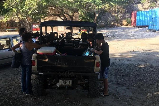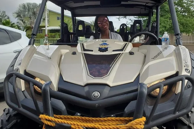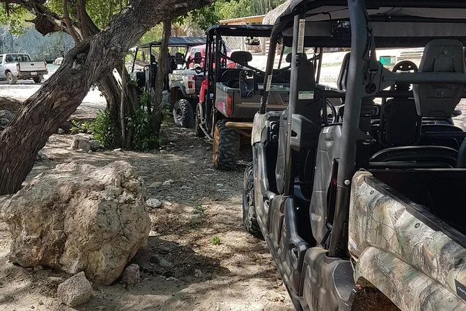 Tu día incluye el uso del equipo de snorkel en la playa Kokomo (y en otras paradas si quieres), gafas de seguridad para los caminos polvorientos, botellas de agua helada durante todo el recorrido y la guía de alguien que realmente vive aquí — todo acompañado de muchas oportunidades para quitarte la arena o el barro en aguas cristalinas del Caribe antes de regresar.