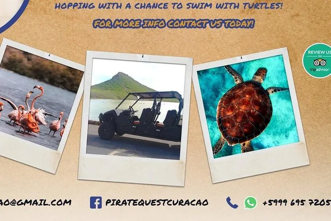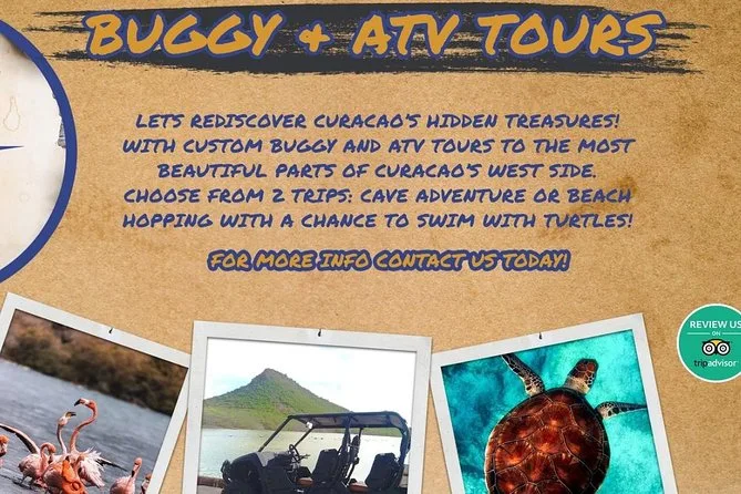 Recorre el oeste de Curazao en buggy con un guía local, explora cuevas vírgenes como la Sala Azul, observa flamencos salvajes de cerca y haz snorkel en la playa Kokomo (equipo incluido). Prepárate para polvo en la piel, sal en el cabello, risas en caminos rudos — y quizás alguna tortuga marina si tienes suerte.