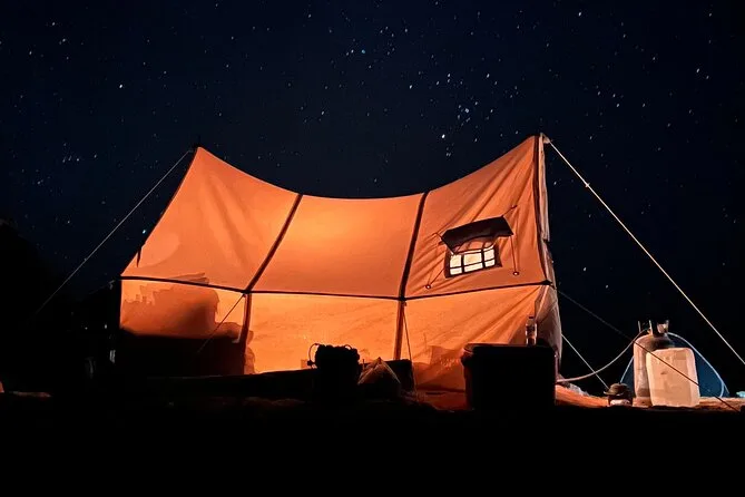 Comparte té con beduinos bajo el cielo del desierto, sube colinas volcánicas negras para admirar el valle, busca cristales entre las arenas milenarias y relájate en aguas termales naturales antes del desayuno—todo con comidas incluidas. Esta experiencia nocturna te conecta con el Desierto Blanco de Egipto como ninguna foto podría.