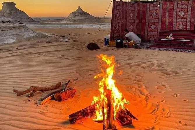 Esta es tu oportunidad de dormir bajo un manto de estrellas en el Desierto Blanco de Egipto, probar auténtica comida beduina junto al fuego, refrescarte en manantiales fríos del Oasis de Bahariya y admirar formaciones rocosas surrealistas de cerca. Despierta con el amanecer sobre arenas blancas: una experiencia única e inolvidable.