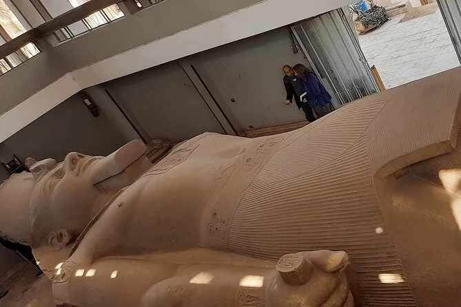 Después visitamos Menfis—la verdad, no es tan espectacular como Giza, pero esa enorme estatua de Ramsés II recostada te queda grabada. El museo al aire libre permite acercarte bastante a algunas esculturas. Ya entrada la tarde, regresamos a El Cairo, cansados pero emocionados por todo lo que habíamos vivido en un solo día.